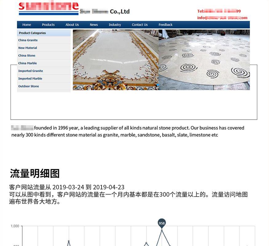 谷歌海外推廣石材行業案例客戶公司成立于1996年,是各種天熱石材的供應商,業務覆蓋了近300種不同的石材,主要有花崗巖、大理石、砂巖、玄武巖、板巖、石灰巖等。